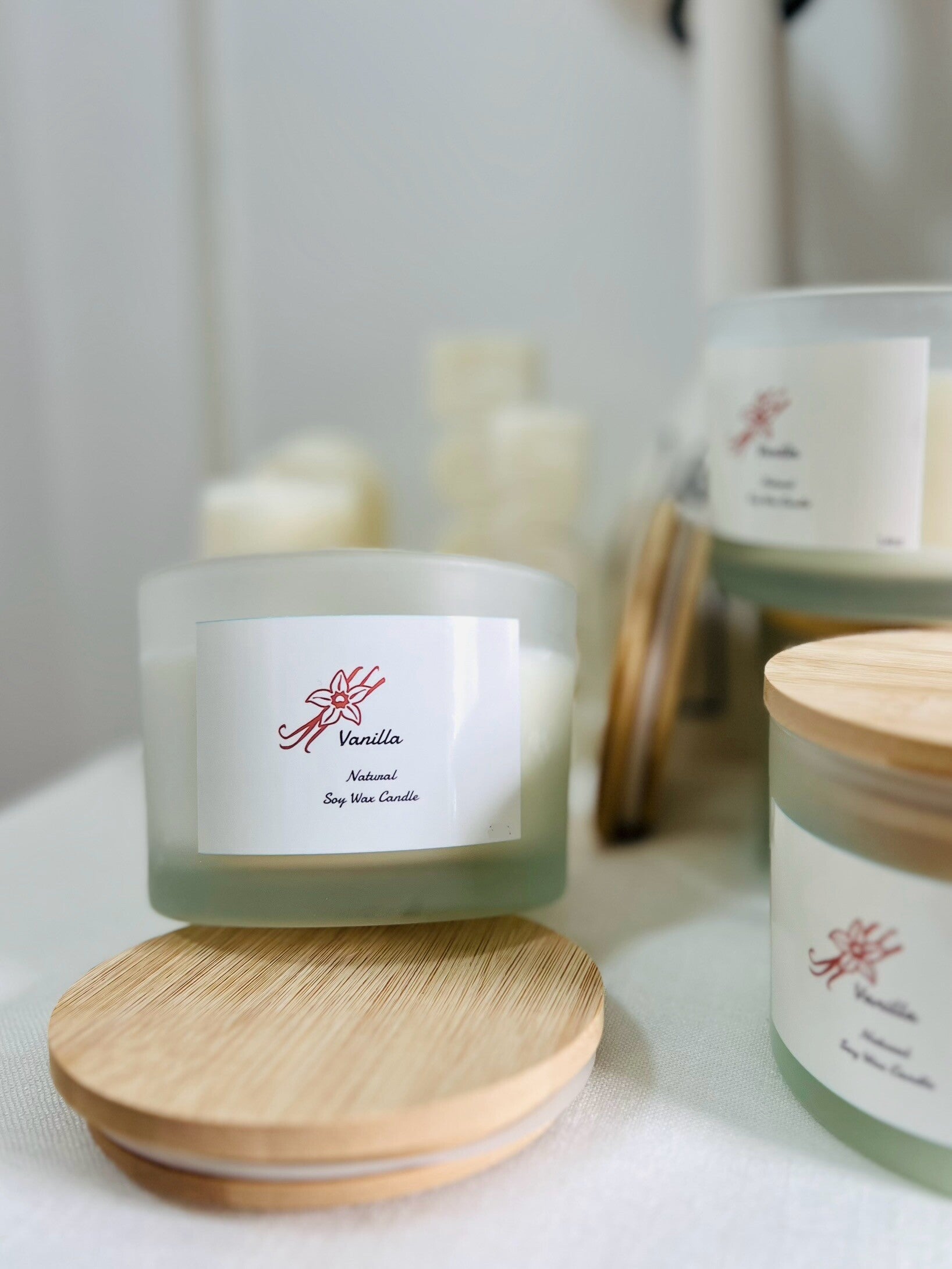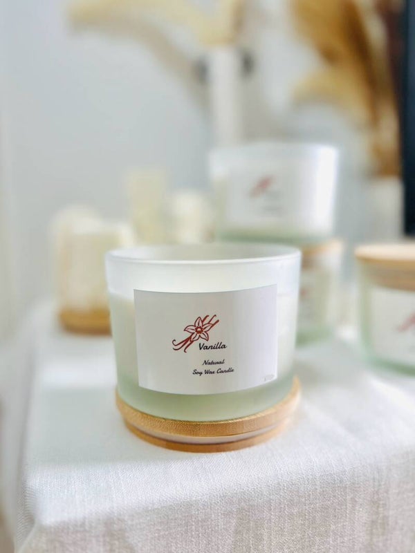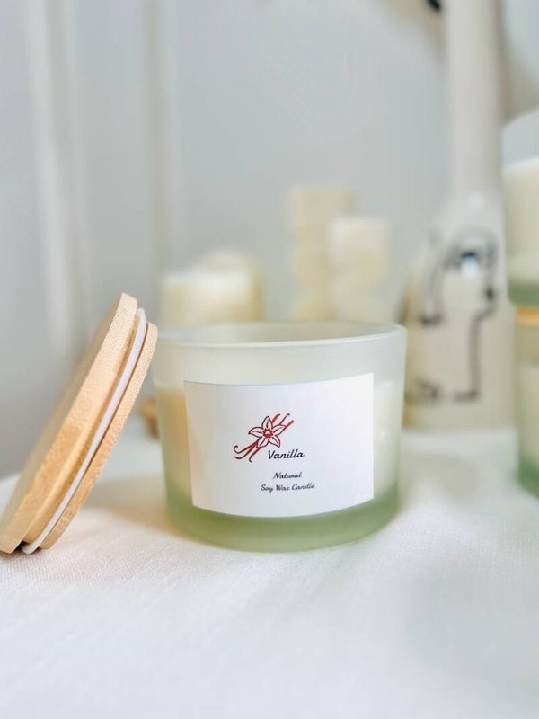 Bring warmth and serenity into your space with the Vanilla Dream Soy Candle. Hand-poured from natural soy wax, this candle offers a calming vanilla fragrance that soothes your senses and creates a cozy ambiance. Housed in a minimalist frosted jar with a bamboo lid, it adds a touch of elegance to any decor. Whether you’re unwinding after a long day or setting the mood for a peaceful evening, the Vanilla Dream Soy Candle is your perfect companion.